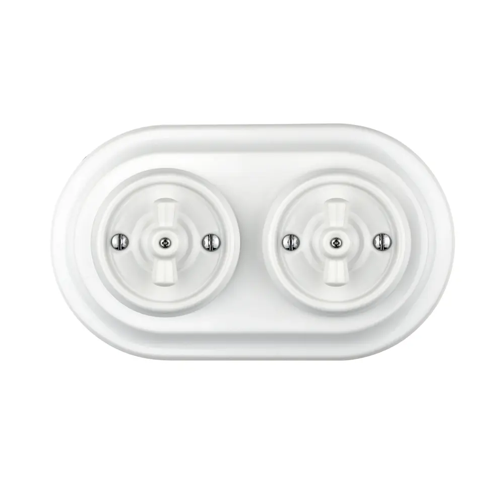 Fnd draai-wisselschakelaar, porselein, wit, schroefklem, 10 A, 250 V, IP20.
