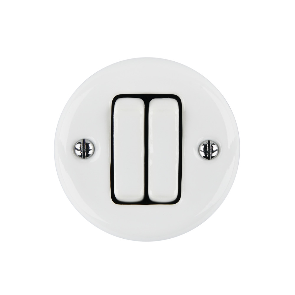 Fnd opbouw wissel-wisselschakelaar, porselein, wit, schroefklem, 10 A, 250 V, IP20.